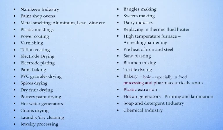 | Heating Capacity | 50,000 kcal/hr – 10,00,000 kcal/hr |